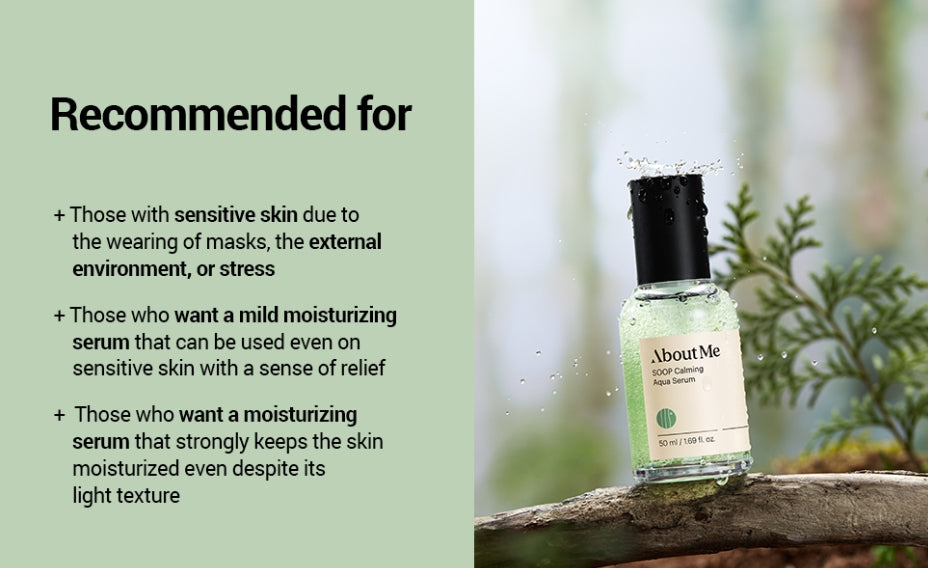 EASY TO USE FACE SERUM: About Me moisturizing face serum is perfect for those with sensitive and dry skin. After toner, take an appropriate amount and spread it gently along the skin, patting gently for better absorption.