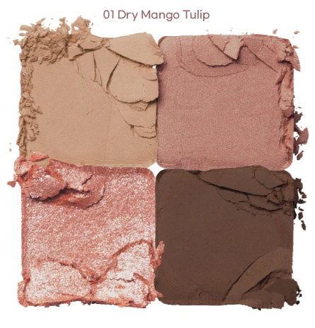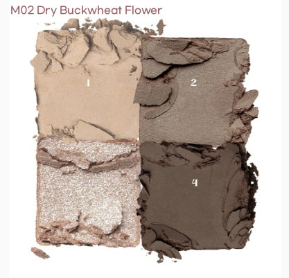 Four-shade eye shadow palette features matte and glittery formulations in colors inspired by dried flowers.