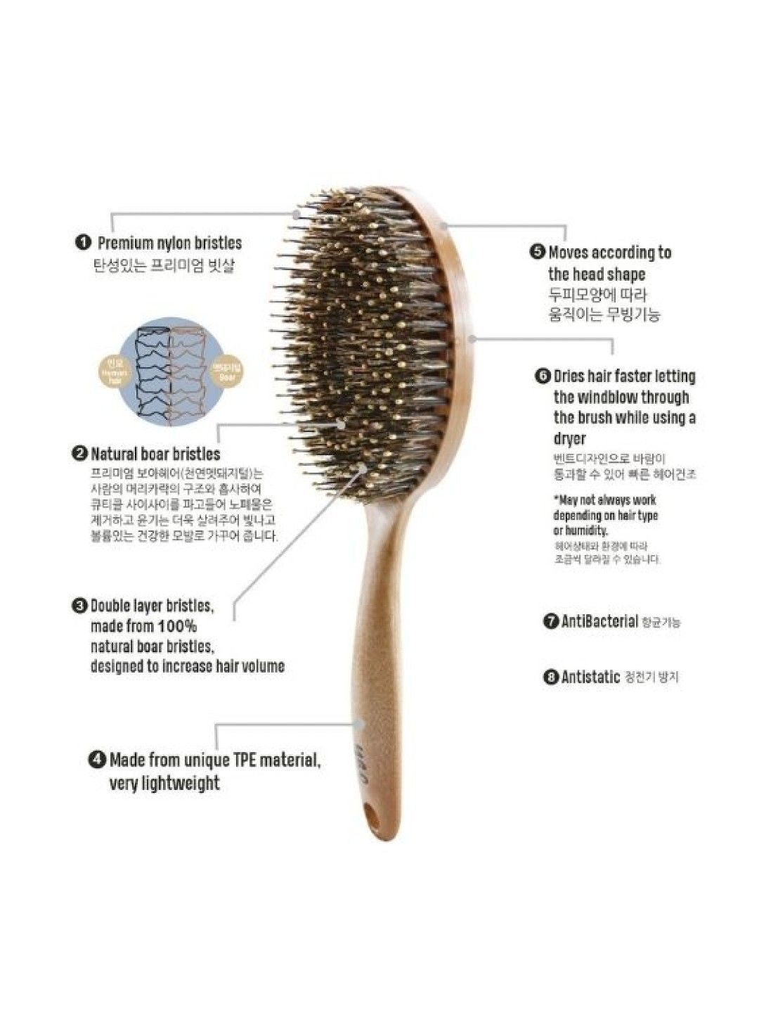 Moving Round Boar Brush – From scalp massage to volume care, A wide hairbrush with premium natural boar bristles